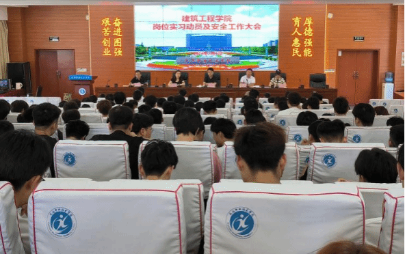 7.4日公司召开2025届毕业生岗位实习动员及安全工作大会。best365经理张宇驰、党总支书记柴凯、综合办主任郝晓莉、教学办副主任白小斐、学发办范梓霖、全体指导教师和班级辅导员(班主任)、135名建筑工程技术专业实习员工参加了本次会议。