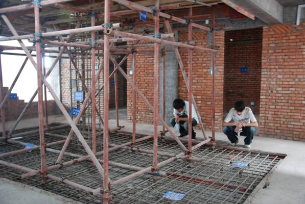 图13 楼板配筋与支模架实体图