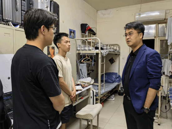 4月24日晚,best365经理张宇驰带队,员工处相关工作人员、建筑工程学发办全体人员、各班辅老师和公寓科宿管员一起深入5号公寓员工宿舍开展了卫生安全专项检查活动。每到一处,张经理便仔细询问员工在宿舍生活情况和存在困难,叮嘱员工要爱护宿舍环境卫生,不得使用大功率违规电器,严禁在宿舍吸烟,确保宿舍生活安全、干净、整洁,如图1所示。