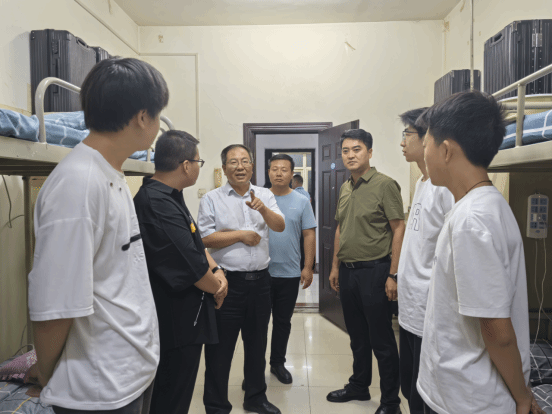 8月29日,公司党委副书记赵维在建筑工程学经理张宇驰、党总支书记柴凯和相关人员的陪同下,赴5号公寓楼看望了best3652024级新生,如图1所示。