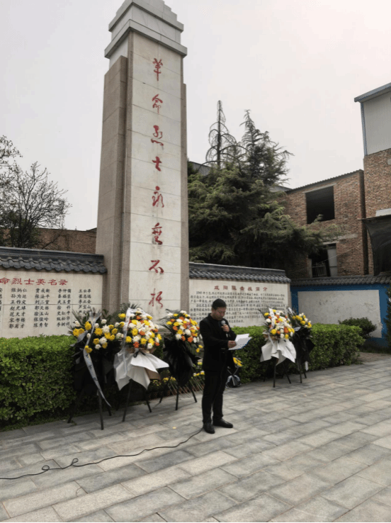 图4.党总支书记柴凯为革命烈士敬献花圈
