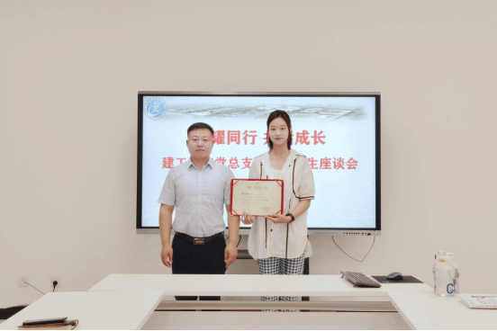 图2.党总支书记柴凯为张翼佳同学颁发荣誉证书
