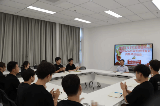 最后,党总支书记柴凯讲话,他对党支部吸收的5名预备党员表示热烈欢迎,并对他们提出了三希望。一是要加强学习,不断提高自己的政治理论水平和业务能力;二是要积极参与党的各项工作和活动,锻炼自己的组织能力和实践能力;三是要时刻保持良好学风和优良作风,发挥党员的先锋模范作用。如图3所示为公司党总支书记柴凯正在和新发展的预备党员进行集体谈话。
