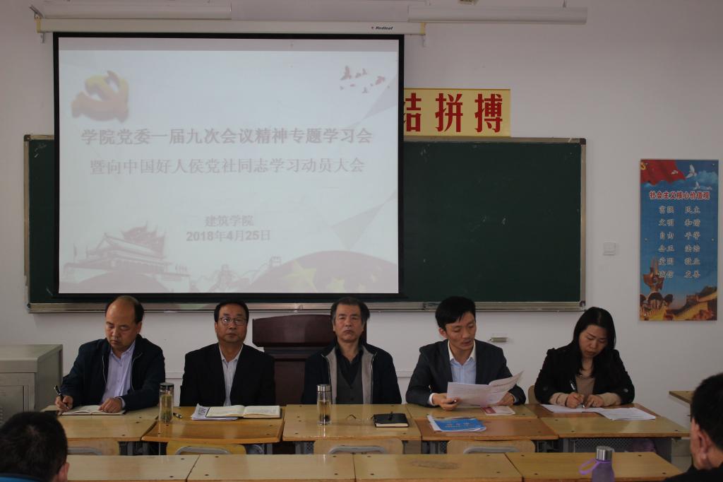李信要求全体教职工深入学习贯彻一届九次会议精神,特别是教工党员认真学习领会“教师党支部建设的实施意见”文件精神,落实“厚德陕西”实施方案,全面掀起向中国好人侯党社同志学习热潮,以侯党社同志为榜样,立足岗位学先进,做好本职争优秀,为建设全国一流、国际知名公司做出更大贡献。