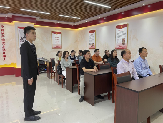 4月21日下午,建筑公司党总支书邢剑宏带领全体党员到公司党性体检中心·VR党史馆开展党性教育活动,铭记党的历史,感悟党的光辉,传承红色基因,坚定理想信念。如图1所示正在建筑公司全体党员正在参观党史馆。