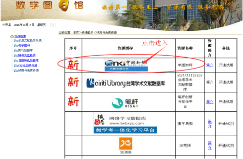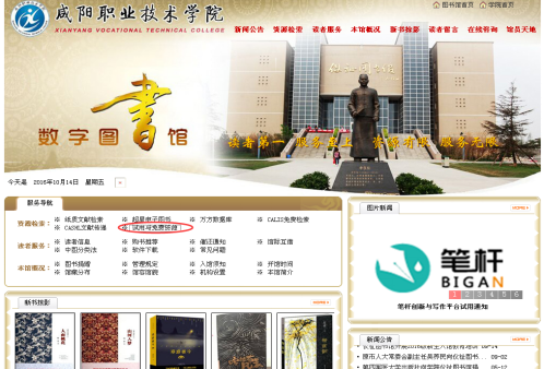 1、登录http://www.cnki.net或在校园网内直接登陆咸阳职院仪祉图书馆主页,点击“试用与免费资源”。