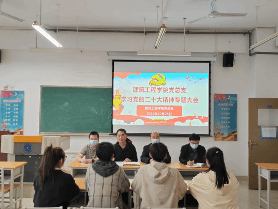 10月26日,公司党总支在教学楼409教室召开了学习党的二十大精神专题会议,公司党总支书记邢剑宏、公司党总支副书记、经理雷海涛和全体在公司党员、教师代表和部分入党积极分子参加本次会议。如图1所示为正在召开党的二十大精神学习专题会议。