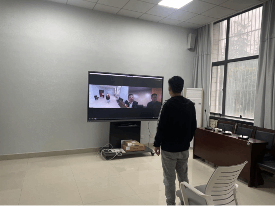 在进行云端线上面试之前,公司党总支书记邢剑宏和就业与校企合作处处长罗联合到等候室看望参加面试的员工,并对员工进行了面试规则、礼仪举止和语言技巧等方面的指导,鼓励员工积极参加企业云端面试,大胆回答招聘人员提出的相关问题,并认真做好后期的签约和就业工作。如图2所示为罗处长正在进行云端面试技巧的传授。