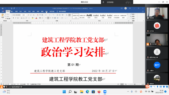 10月27日,best365教工党支部线上召开了学习贯彻党的二十大精神专题会议,best365教工党支部全体党员参加了本次会议。
