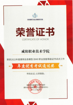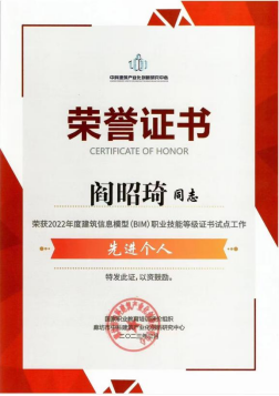 按照中科建筑产业化创新研究中心《关于表彰2022年度1+X建筑信息模型(BIM)职业技能等级证书先进工作单位及先进个人的决定》(廊坊中科〔2023〕07号)表彰我省先进工作单位及先进个人,公司获评“年度优秀考试通过奖”,教师阎昭琦获评“年度先进个人”荣誉称号。