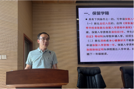 教学办主任史国庆宣讲学籍管理规定,让新生们对大学的学习规范有了清晰的认识,有助于他们更好地规划学业。