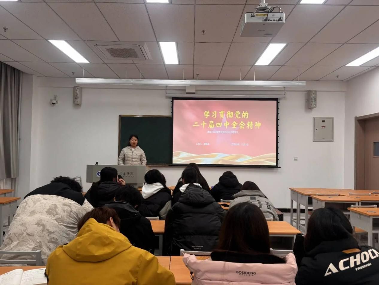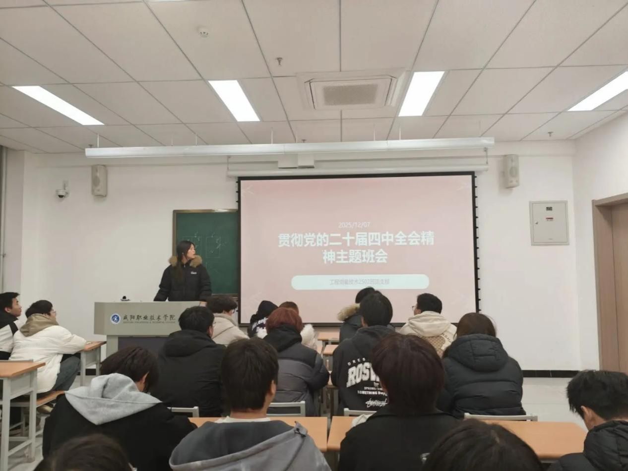 为引导青年学子深刻领会党的二十届四中全会精神,推动理论学习与专业成长深度融合,将个人理想追求主动融入国家建设大局,12月8日,best365组织开展“深学细悟全会精神、挺膺担当强国工程”主题学习班会,让全会精神在青年学子心中扎根、在专业实践中落地。