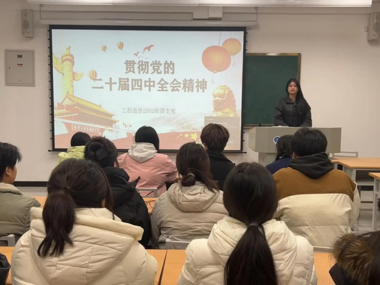 班会学习让同学们深受启发、倍感振奋。大家纷纷表示,将以此次学习为契机,把党的二十届四中全会精神转化为学习动力和行动自觉,在专业学习中精益求精,认真打磨每一份实训成果、严谨对待每一次实践操作,主动钻研行业前沿技术;在成长道路上坚定理想信念,把“建精品工程、护家国安宁”的初心融入血脉,以青春之我、奋斗之我投身国家基础设施建设、城乡融合发展等重点领域,为实现中华民族伟大复兴的中国梦贡献建工青年的智慧和力量。