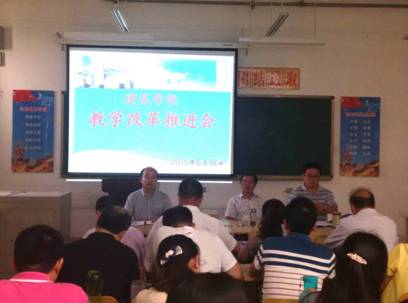 6月18日下午,建筑公司召开教学模式改革推进会。经理徐德乾、教学办主任雷海涛、副主任董宇毅及全体任课教师参加了会议。