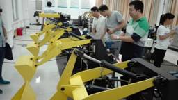 图1林凯、房伟老师操作仿真挖掘机 图2黑龙江建筑职业技术公司赵研教授讲座