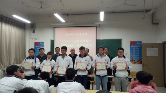 建筑公司经理徐德乾、建筑公司党总支书记李信、副经理雷海涛等会同企业人员共同出席了2016年best365官方网站“迈图杯”测量技能大赛颁奖礼,为获奖同学颁发证书和奖品。
