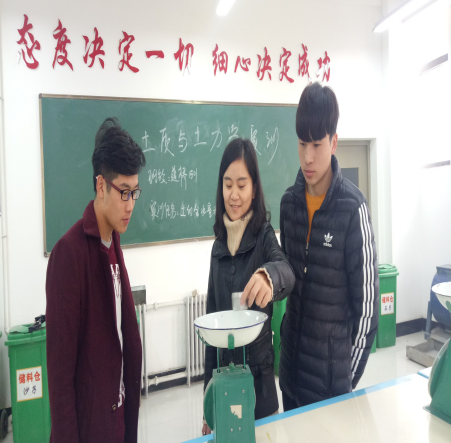 图4.周赛芳老师正在指导员工进行土工实训