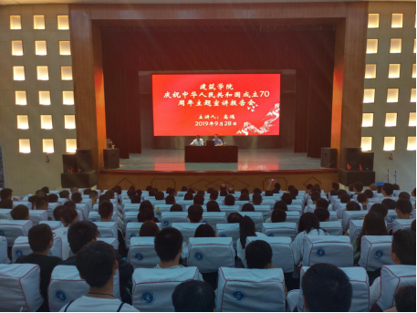 9月28日下午,建筑公司在艺术楼演播大厅组织举办庆祝中华人民共和国成立70周年主题宣讲报告会。建筑公司全体教职工暨2019级全体新生共370余人参加了报告会。报告会由公司西北文学研究院经理、《西北文学》杂志社社长高鸿主讲。
