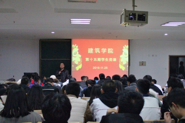 2019年11月25日,在教学楼103多媒体教室建筑公司第十五期党课正式开班。本次党课由建筑公司党总支书记李信主讲,学发办主任董宇毅主持。
