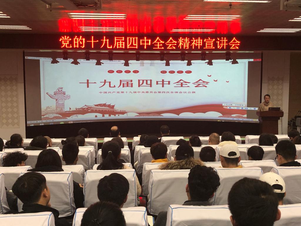 12月19日下午,建筑公司、医药化工公司在教学楼群楼105组织举行党的十九届四中全会精神宣讲会。建筑公司、医药化工公司全体教职工暨参加党课培训员工共300余人参加了宣讲会。宣讲会由院宣讲团成员、财经公司党总支副书记、经理王江峰主讲。