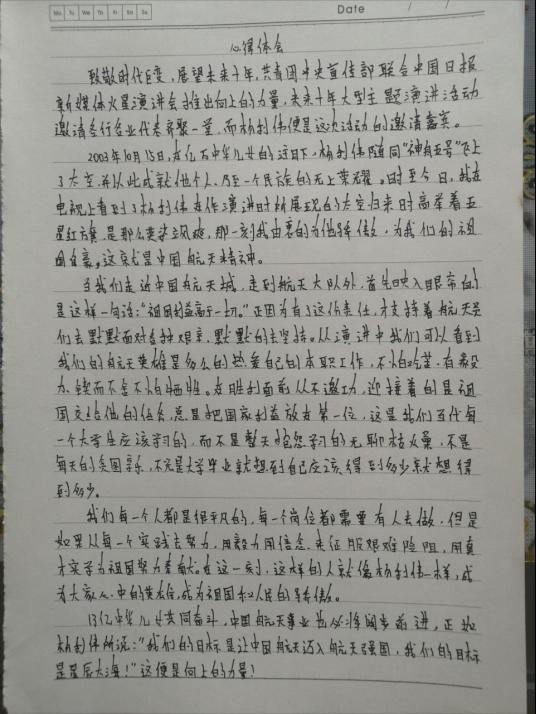 其次,在视频观看结束后。各班辅导员和班主任线上组织开展了相关主题教育班会。在班会举行过程中,同学们针对航天英雄杨利伟本次演讲的内容进行了热烈的讨论与交流。从专属中国航天员的taikongnaut中,我们感受到中国航天在世界航天中地位的变化;从航天员魔鬼式训练中,我们感受到航天员责任与品质的坚定;从“一个尽忠,一个尽孝”的对话中,我们感受到祖国利益高于一切。如图2所示为建筑公司员工的学习心得。