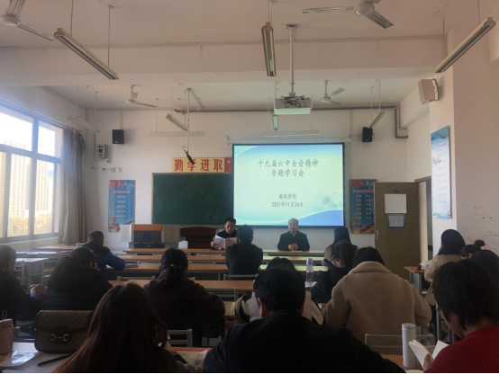 11月24日下午,建筑公司在教学楼402召开党的十九届六中全会精神专题学习会,全体教职工参加了会议。会议由党总支书记邢剑宏主持。